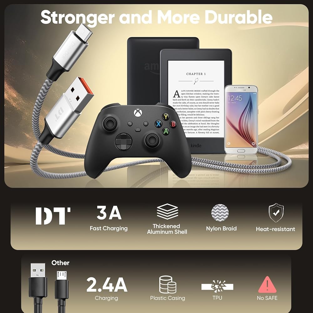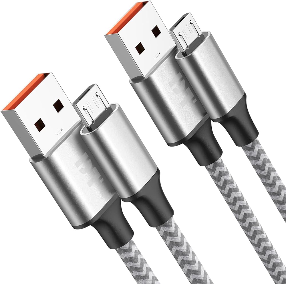 كابل Micro USB بطول 6 أقدام قطعتين، سلك شحن Android Kindle بقدرة 15 وات (3A)، USB A إلى Microusb مع نقل بيانات بسرعة 480 ميجابت في الثانية لنظام Android القديم Kindle PS4 Switch Xbox One، مجدول من النايلون