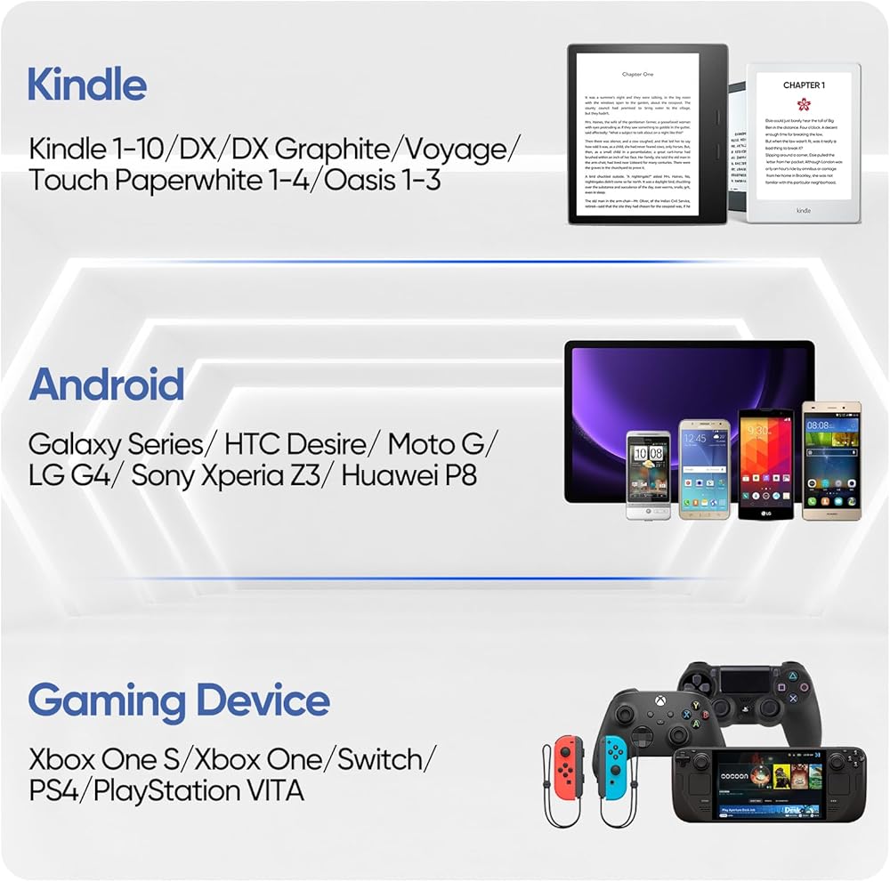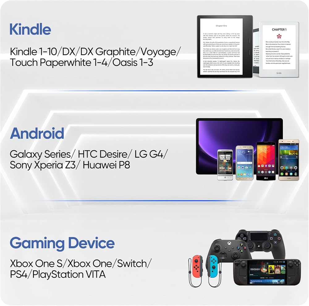متوافق مع معظم أجهزة Micro USB: microusb المفضل لمستخدمي هواتف Android القديمة أو Kindle، مع واجهة صغيرة قياسية، ومتوافق أيضًا مع مكبرات صوت Bluetooth، والكاميرات، وأجهزة التحكم في الألعاب، والأقراص الصلبة، وكاميرات الأمان، والمراوح اللاسلكية، وبنوك الطاقة، والمزيد من الأجهزة