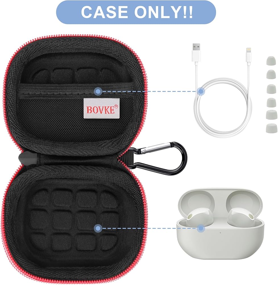 حقيبة حمل BOVKE لهاتف Sony WF-1000XM5 سماعات أذن بلوتوث لاسلكية بخاصية إلغاء الضوضاء، جيب إضافي لكابل الشحن وأطراف سماعات الأذن، أسود