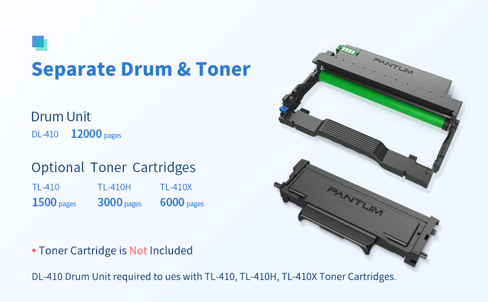 - تم تصميم DL-410 الأصلية من Pantum للعمل بسلاسة مع طابعة الليزر Pantum الخاصة بك، مما يوفر صفحات احترافية وحادة