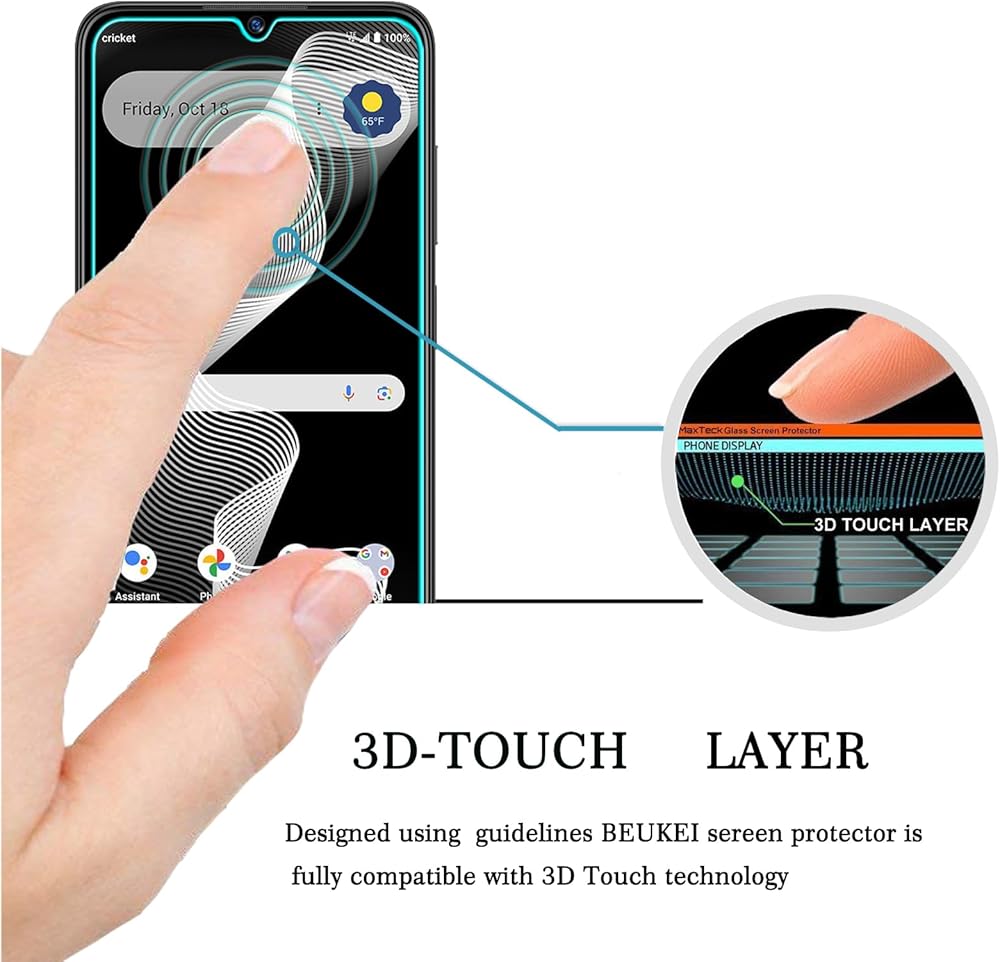 beukei (3 عبوات) مصمم لواقي شاشة Cricket Debut S3 من الزجاج المقسى، صلابة 9H