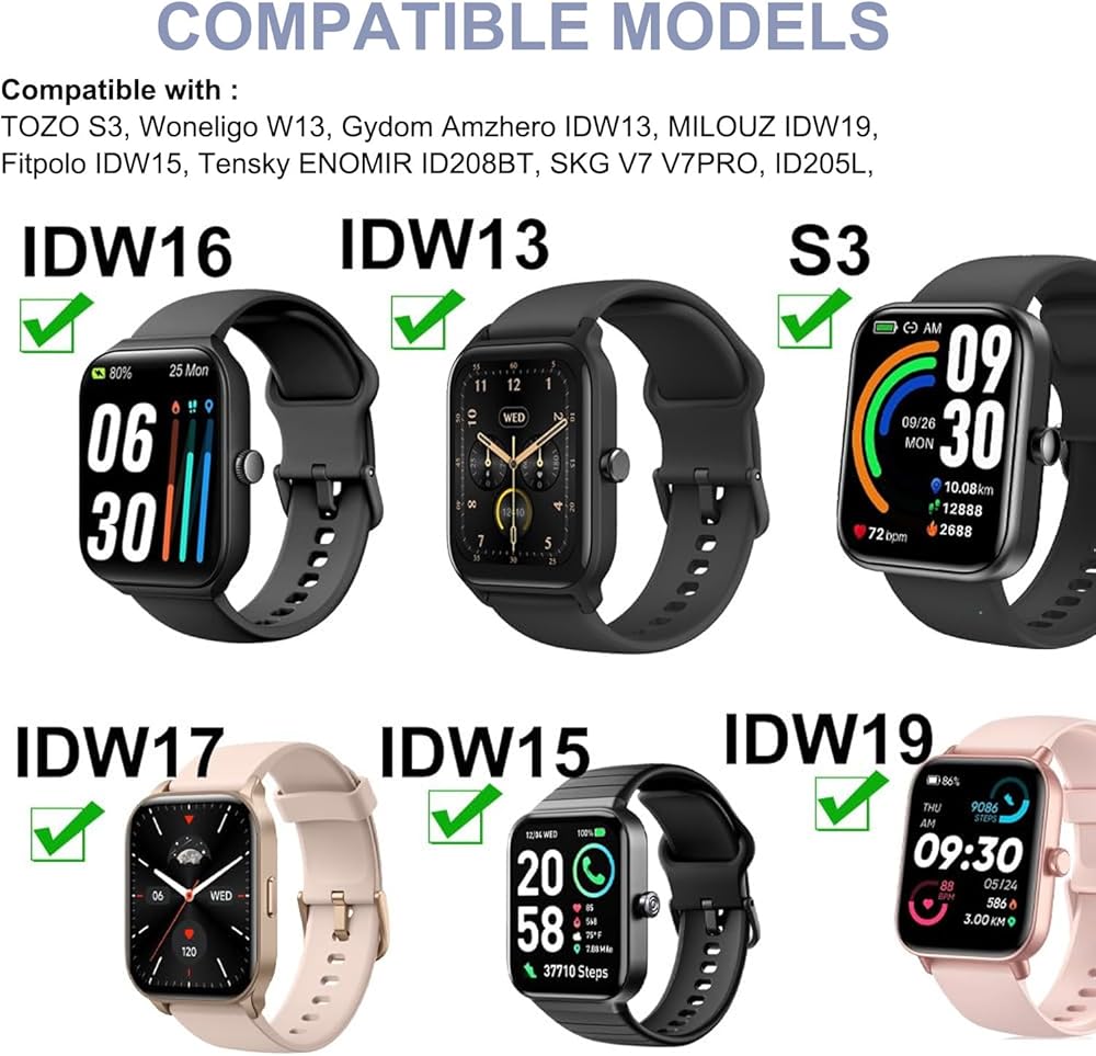 5. ✅This product is compatible with T99S FEIFUNS, X19 BOCLOUD, TGW101 SIRIUS TOUCHELEX Sirius, M1 PRO, C17 KOSPET, TGW006 HAILEY TAIZE TOUCHELEX Hayley, KW76 , C18 MINGWEAR WEYBON NIIZERO, ID207, ID206 MINI, iW1 Letsfit Fitniv, C16 MILITARY, NK03 call, S2, S2mini, and compatible with Military Watch AMAZTIM Rgthuhu 1.71” C20 and KOSPET TANK M1 1.72”