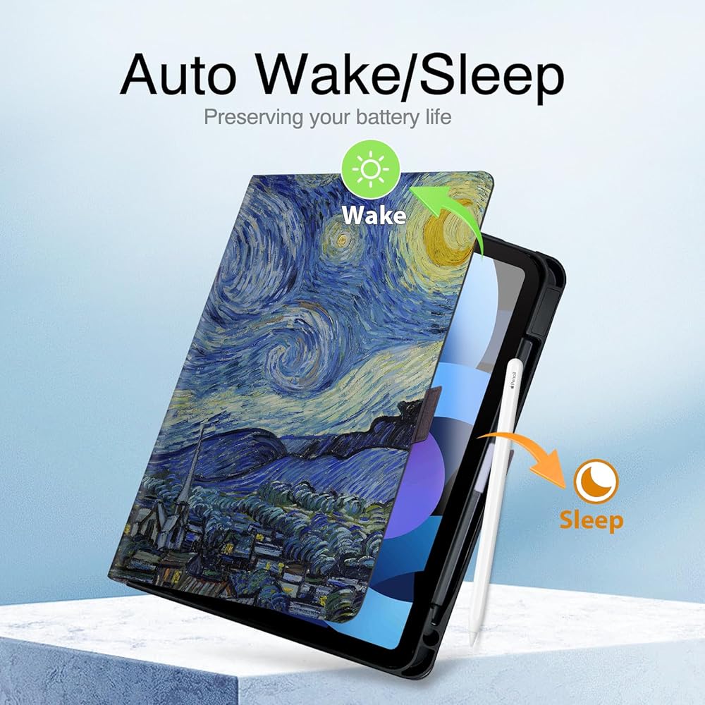 حافظة لجهاز iPad Air 6th 11 بوصة M2 /4th/5th Generation 10.9 مع حامل قلم رصاص، تنبيه/غفو تلقائي، مشبك مغناطيسي، غطاء حماية قابل للطي لجهاز Apple iPad Air 6/4/5 Gen 2024/2020/2022، ليلة مرصعة بالنجوم