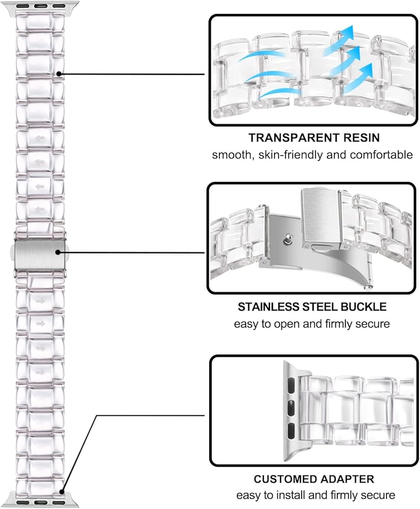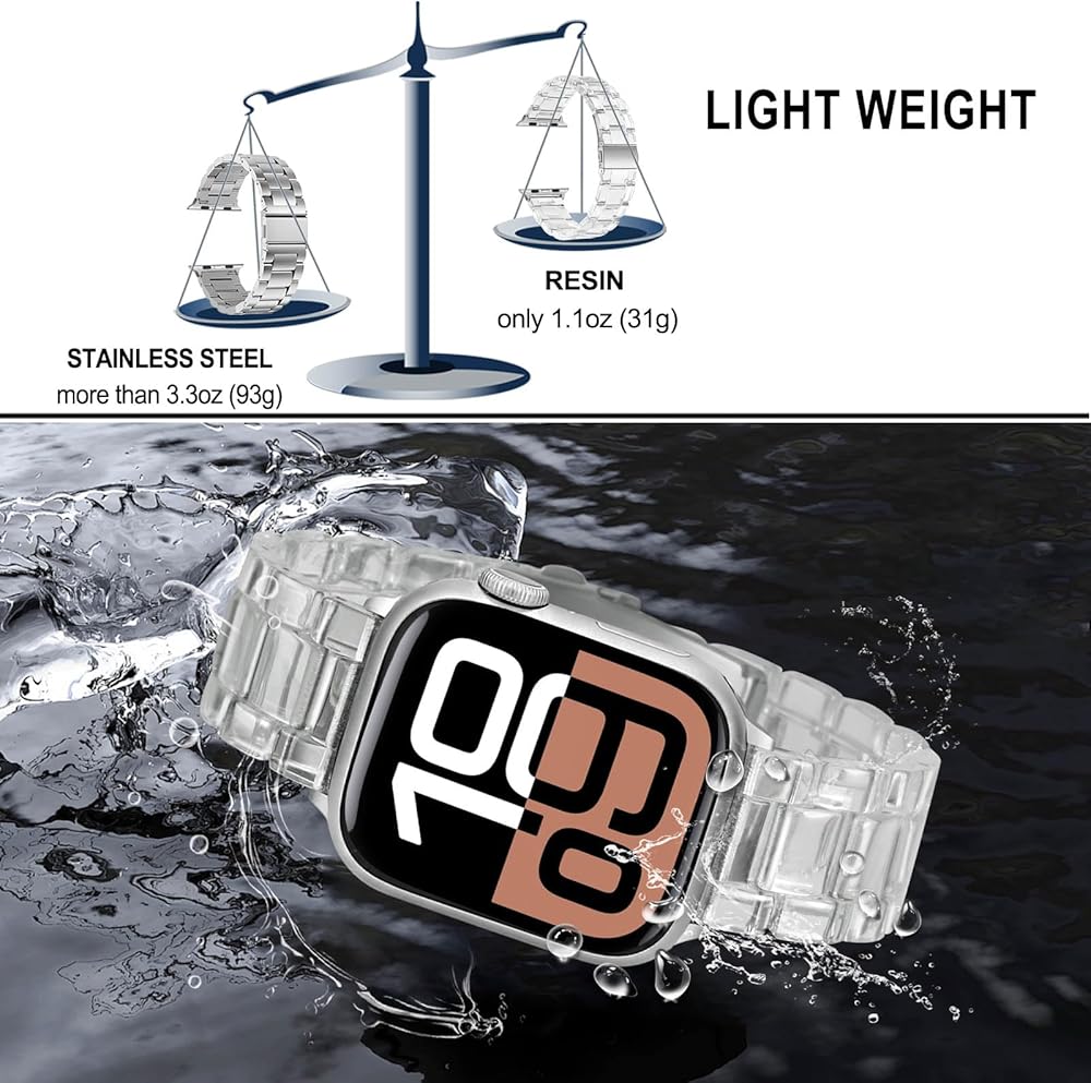 SUPERB MATERIAL & CRAFTMANSHIP: Made of premium resin with pearl tone, each piece of resin is slowly polished by the experienced artificer, smooth, skin-friendly and comfortable. Only weigh 1.1oz (31g), lighter than stainless steel metal band, water/sweat-proof.