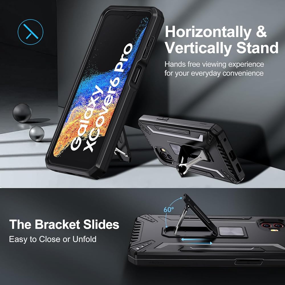 ivoler Case for Samsung Galaxy Xcover 6 Pro with Stand and [2 Pack Tempered Glass Screen Protector], Military Protection, Shockproof Hard Back Phone Case, Anti-Scratch Rugged Protective Cover, Black