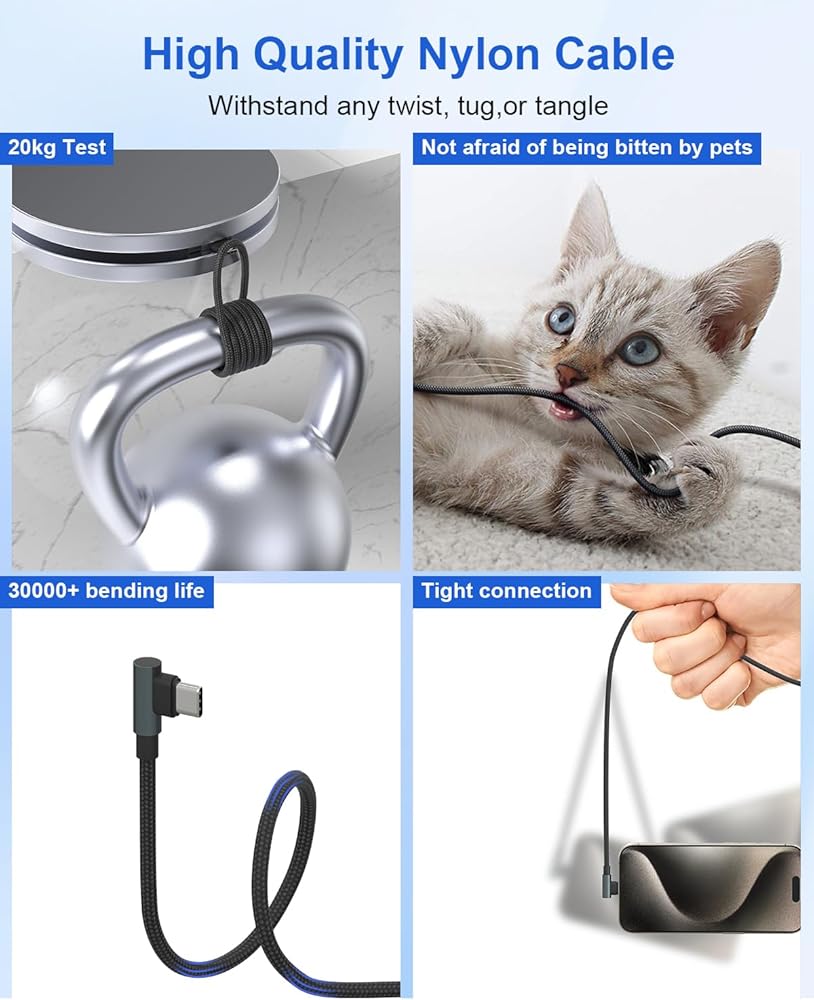 مرنة وموثوقة: مصنوعة من ضفائر النايلون المتينة، وتتميز بمرونة ومتانة ممتازة لتحمل البلى والتمزق اليومي، ويمكنها تحمل أكثر من 30000 عمر من الانحناء، وليس من السهل أن تتشابك.