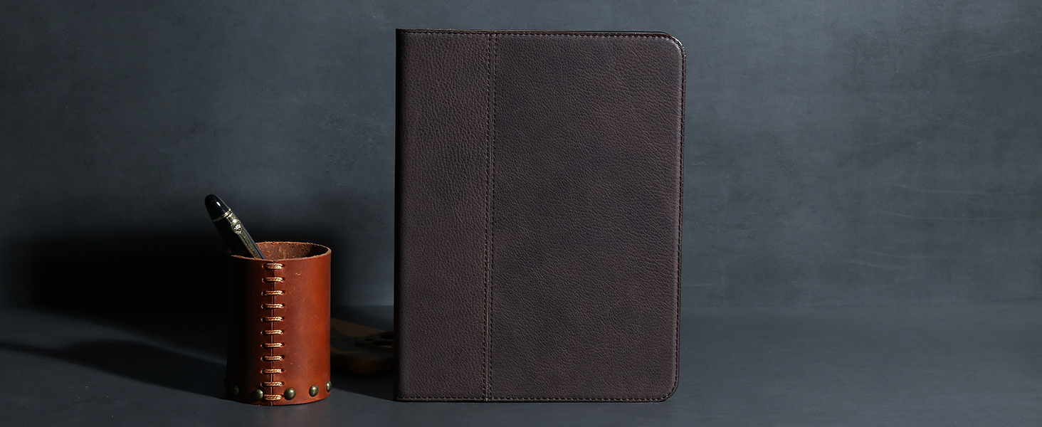[جلد أصلي فاخر] - حافظات جلدية لجهاز iPad من GEXMIL مصنوعة بدقة من طبقة علوية من جلد البقر الأصلي. يتم اختيار هذه الجلود من حيث الجودة والقوة والشخصية والحبوب. إلى جانب مظهرها الأنيق وملمسها الطبيعي، فإن كل حافظة من حقائب Gexmil فريدة من نوعها في العالم حيث أن لون ونمط كل جلد مميز. هذا هو المكان الذي يكمن فيه سحر الحقيبة الجلدية.