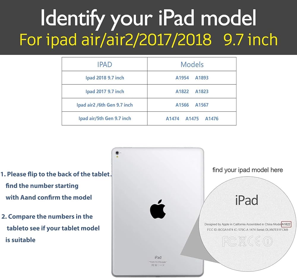 [التوافق] - حافظة iPad من الجلد الأصلي مصممة لجهاز Apple (رقم الموديل A1893 A1954) / 2017 iPad الجيل الخامس (رقم الموديل A1822 A1823)¡2018 iPad 6th، تناسب أيضًا iPad Air 2 (رقم الموديل: A1566 A1567) / iPad Air ( رقم الموديل: A1474 A1475 A1476)، (وهو غير متوافق مع أجهزة iPad الأخرى ذات الطراز السابق أو أي أجهزة أخرى)
