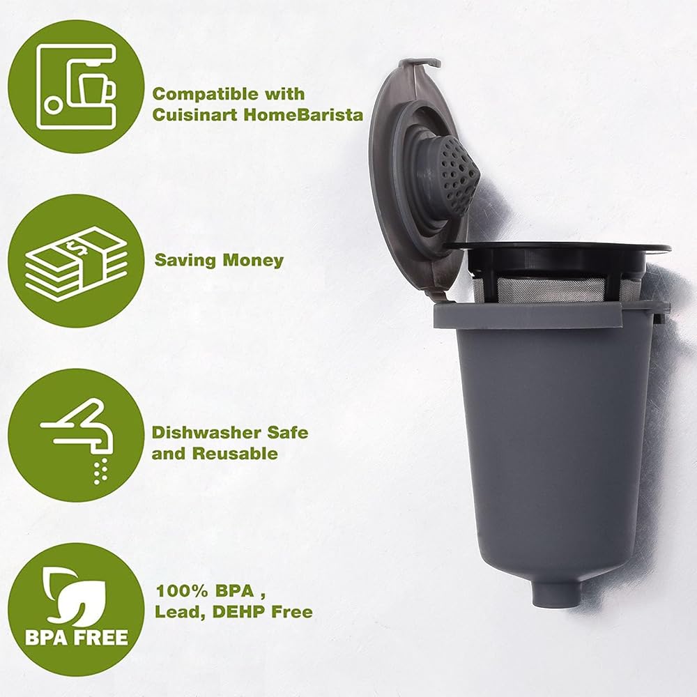 قطعة واحدة من كوب فلتر القهوة الرمادي القابل لإعادة الاستخدام: مصنوع من البلاستيك الخالي من مادة BPA، متوافق مع كوب فلتر Cuisinart #SS-RFC HomeBarista القابل لإعادة الاستخدام.