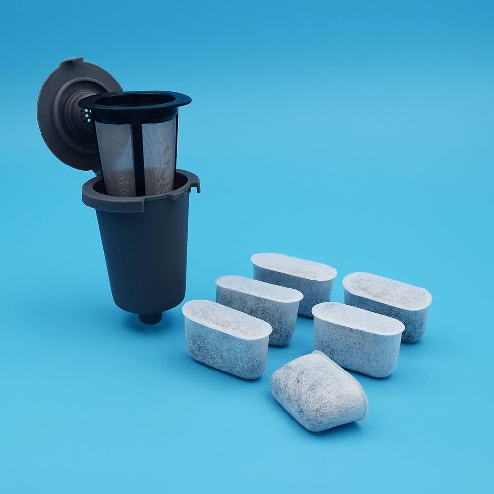 فلاتر مياه فحمية: مجموعة من 6 فلاتر، متوافقة مع جميع ماكينات صنع القهوة من كويزينارت. يمكن أن يساعد في إزالة الشوائب والكالسيوم والكلور والروائح من الماء، حتى تتمكن من صنع أنقى وألذ قهوة باستخدام أنظف المياه.