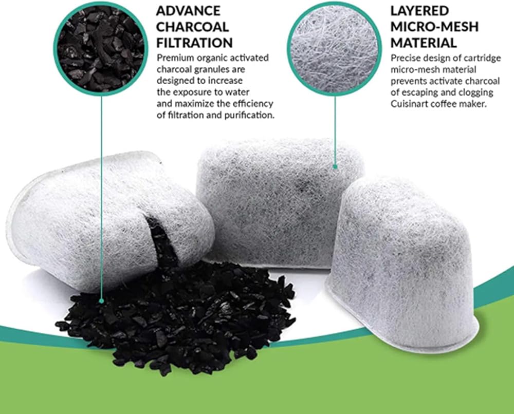 تتضمن العبوة: مجموعة من 6 مرشحات مياه فحمية. 1 × كوب فلتر قهوة قابل لإعادة الاستخدام متوافق مع Cuisinart. يرجى قراءة دليل النموذج بعناية قبل الشراء.