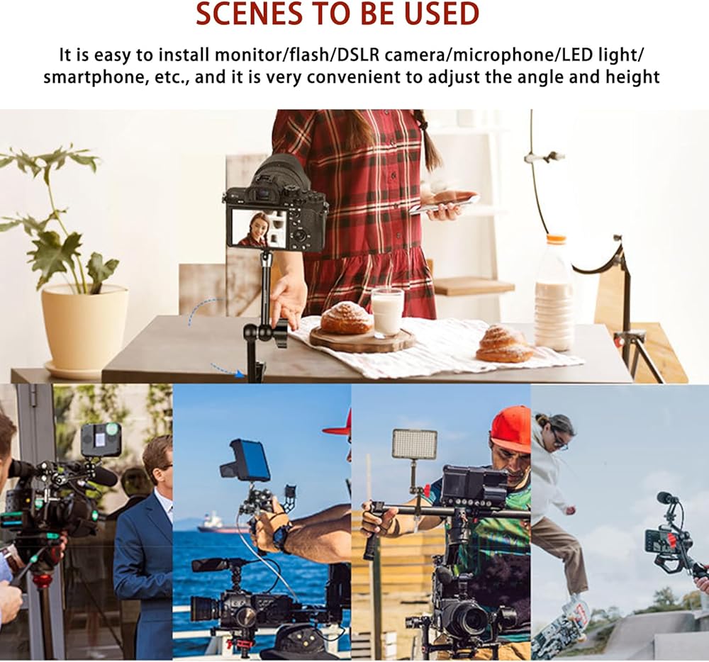 تأتي مع وسادات حماية مطاطية مدمجة مقاس 1/4 بوصة - 20 لمنع الخدوش وزيادة الاحتكاك. المسمار مقاس 1/4 بوصة مناسب لملحقات التصوير الفوتوغرافي مثل الشاشة أو الفلاش أو مصابيح LED أو الميكروفون أو الملحقات الأخرى مقاس 1/4 بوصة ثقب الخيط.