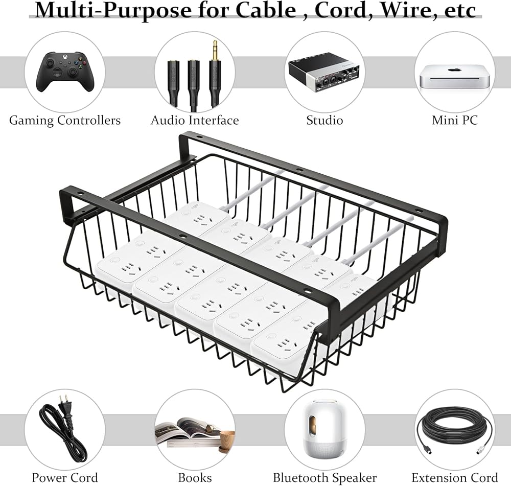 درج كبير أسفل المكتب ينزلق للخارج، درج قابل للفصل أسفل المكتب، رف أسود أسفل الطاولة، إدارة الكابلات تحت المكتب، منظم سلك تخزين تحت المكتب لسلك المكتب المنزلي