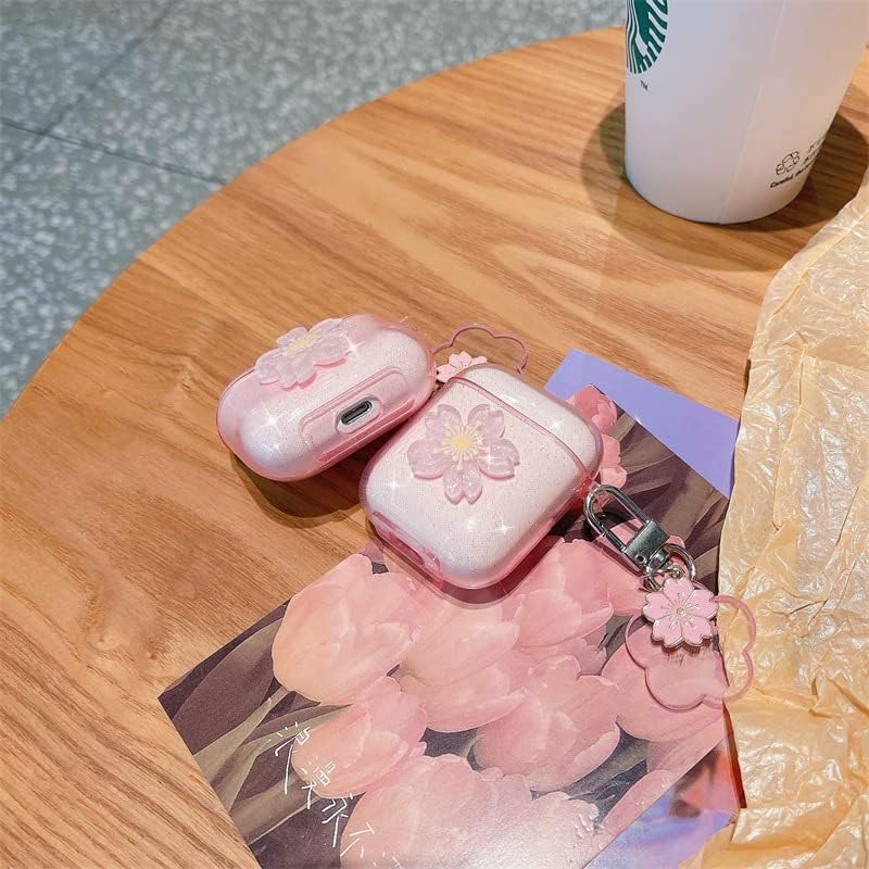 • [Newest Fashion Design]Cute 3D cherry blossom pattern case and sparkling flower keychain, make your Airpods 3 case look more unique and stylish, very eye-catching when shining in the light.