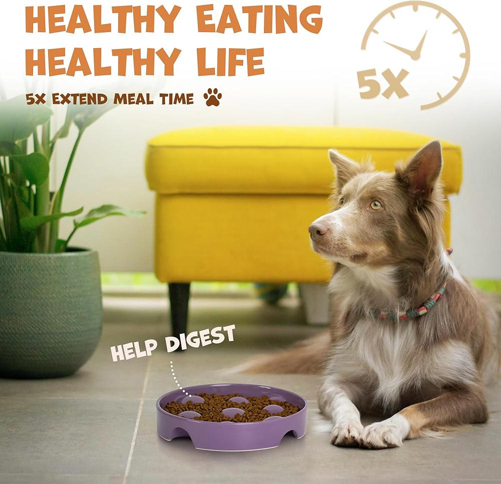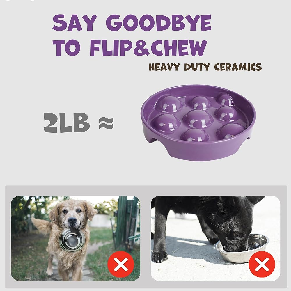 وعاء سيراميك ثقيل: يزن 2 رطل، قوس التغذية البطيء قوي بما يكفي للكلاب المتوسطة. لا مزيد من التقليب أو كسر الأوعية، وهي رائعة لسهولة المضغ.