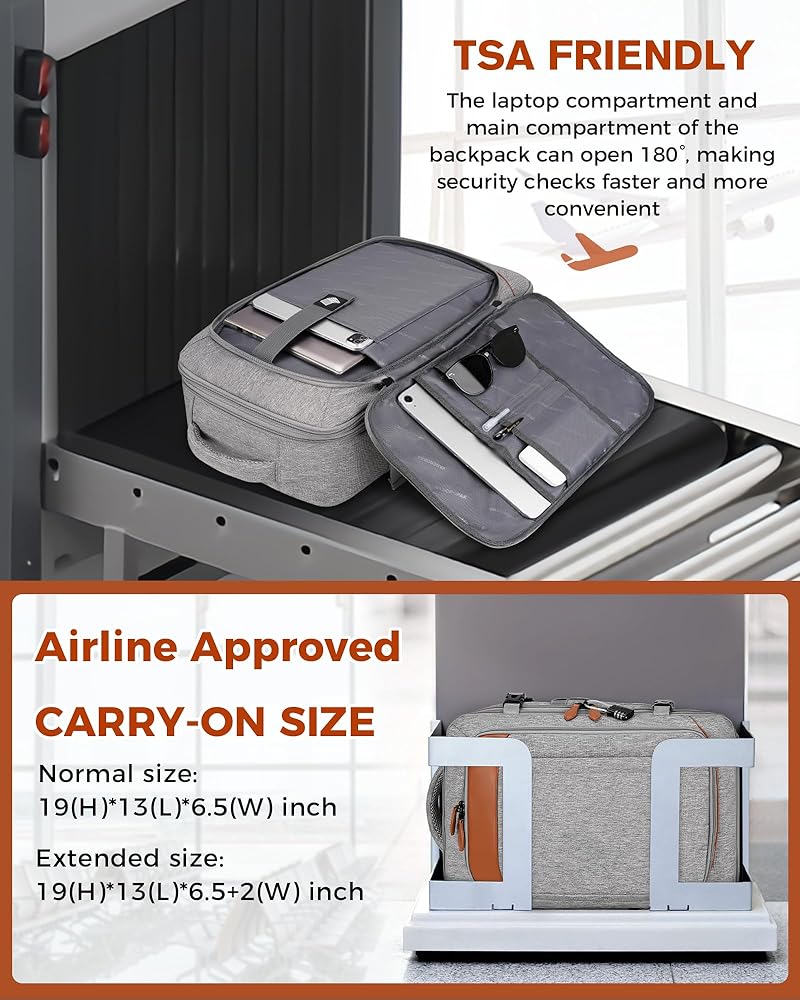 حقيبة ظهر Vancropak للحمل، حقيبة ظهر للسفر معتمدة من الطيران مع 3 مكعبات تعبئة، حقيبة سفر شخصية قابلة للتوسيع تناسب كمبيوتر محمول مقاس 17.3 بوصة، حقيبة أمتعة مضادة للسرقة في عطلة نهاية الأسبوع للنساء والرجال، رمادي