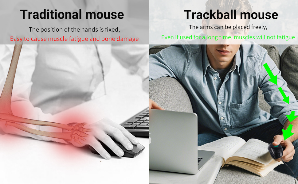 تصميم مريح ومريح: قل وداعًا لتعب اليد وآلام الكتف أو الرقبة التي تسببها الفئران التقليدية. يوفر ماوس كرة التتبع الخاص بنا حلاً أكثر راحة وراحة للاستخدام على المدى الطويل.
