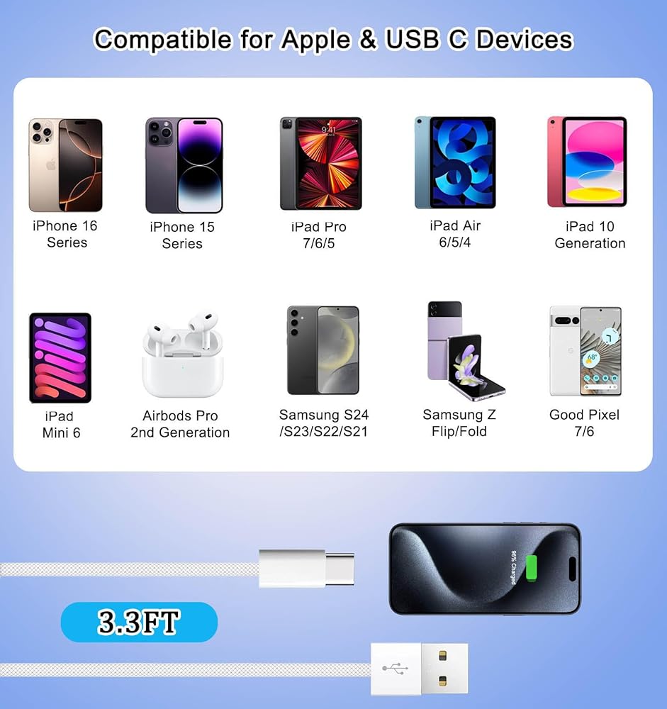 【Universal Compatibility】: This car carplay cable connects your phone/tablet to the car, compatible with iPhone 16/15 Pro Max Plus, and for iPad 10th Gen , iPad Pro 12.9-inch (3rd 4th 5th 6thGenerations), iPad Pro 11-inch (1st 2nd 3rd 4th Generations), New iPad Mini 6th Generation, iPad Air 4th 5th Generation.