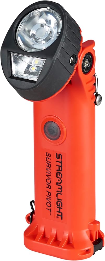 The Survivor Pivot by Streamlight is an intrinsically safe flashlight for rugged and reliable use in hazardous environments. This Class I, Division 1-rated flashlight features a dual beam system with a 90-degree articulating head, allowing spot and flood illumination. The spot beam, equipped with a cool white, high-power LED, provides maximum distance illumination, while the flood beam is angled downward for optimal area lighting. The large translucent push-button switch, with an integrated battery status indicator, offers easy operation even with gloved hands. Constructed from high-impact, super-tough polymer, the Survivor Pivot is exceptionally durable. Its heavy-duty clip with a built-in D-ring ensures secure attachment to gear, enabling hands-free use. Some Survivor Pivots models offer an optional removable magnet with a 30 lb. pull strength and replaceable rubber boot providing versatile mounting options. Those models are 91825, 91826, 91827, 91830, 91831, 91835, 91838, 91839 Engineered for reliability, the Survivor Pivot is IP67-rated for dust-tight and waterproof performance up to 1 meter for 30 minutes and has been tested for 2-meter impact resistance.