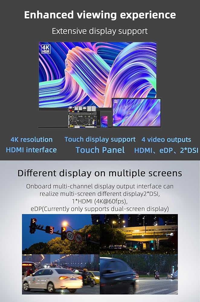 • [عرض I/F] يتمتع YY3568 Devkit بقدرات قوية لمعالجة الصوت والفيديو، ويوفر HDMI 2.0، وeDP 1.3، وMIPI-DSI X2، ويدعم دقة 4K@60FPS، وعرض مختلف على شاشات متعددة.