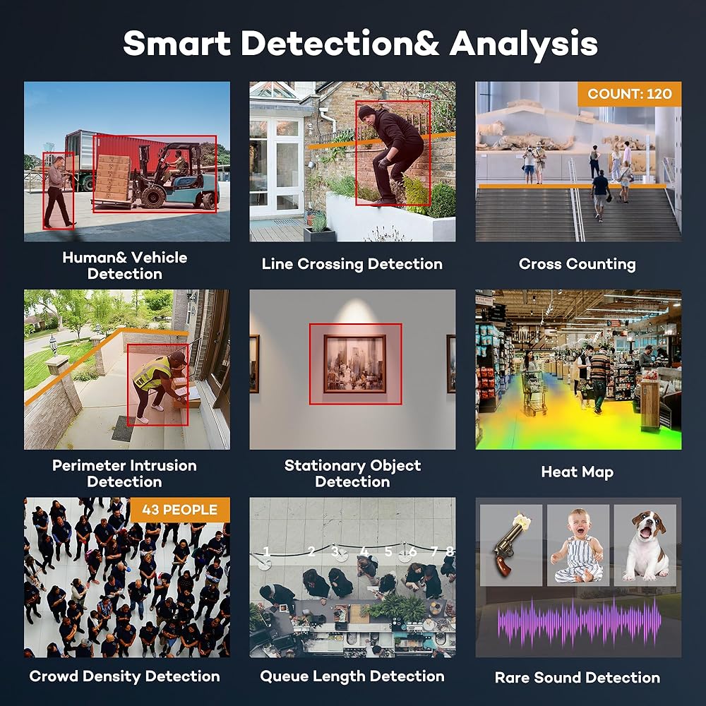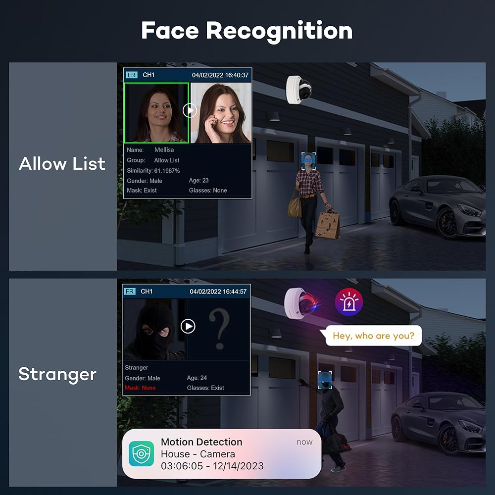 - التعرف على الوجه الذكي بتقنية الذكاء الاصطناعي - يتعرف على الأشخاص لتقليل الإنذارات الكاذبة وتوفير مساحة التخزين.