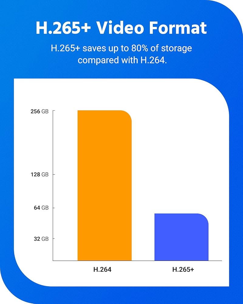【تدفق H.265+ المتطور】يتيح تنسيق الفيديو H.265+ لكاميرا CCTV IP المنزلية الذكية تقديم مقاطع فيديو أسرع وأكثر سلاسة. تعمل الكاميرا المتوافقة مع RTSP مع جميع مسجلات فيديو الشبكة (NVR) من ANNKE والجهات الخارجية، مما يسمح لك بالاستفادة الكاملة من مسجلات فيديو الشبكة (PoE NVR) الموجودة.