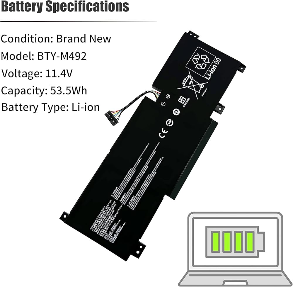 بطارية كمبيوتر محمول 53.5Wh BTY-M492 متوافقة مع MSI Pulse GL66 11UDK-255VN 11UEK-016AU 11UCK-200XPL GL76 Katana GF66 GF76 11UD 11UE 12UG WF66 11UI WF76 11UJ Sword 15 A11UD Crosshair 15 17