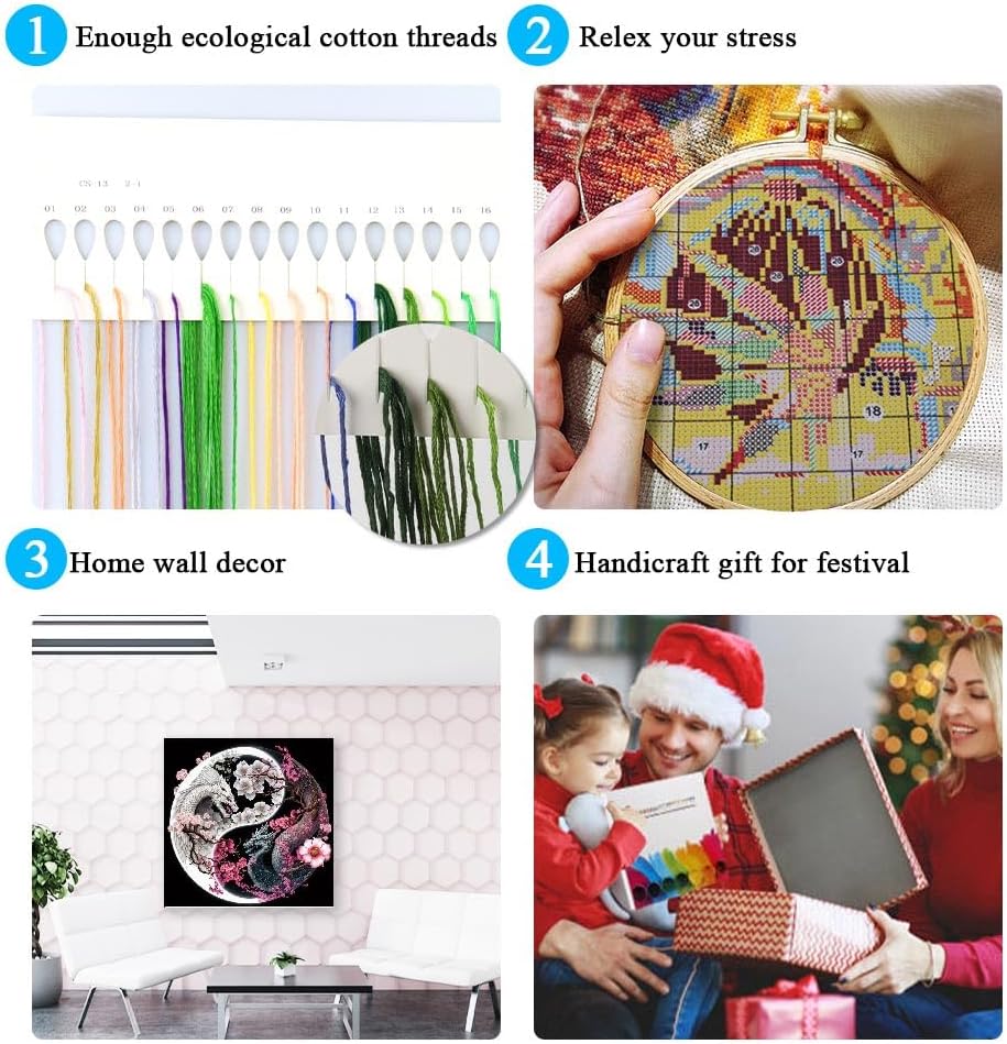 【مثالية للمبتدئين】تعطي مجموعات غرز التنين المتقاطعة لوحة قماشية محددة مسبقًا ووصفًا تفصيليًا، وأدوات كاملة، ومناسبة للأطفال والبالغين والمبتدئين، تحتاج فقط إلى اتباع المسار المحدد مسبقًا، يمكنك أن تأخذ زمام المبادرة للوصول إلى الوجهة واستكمال التحدي الفكري.