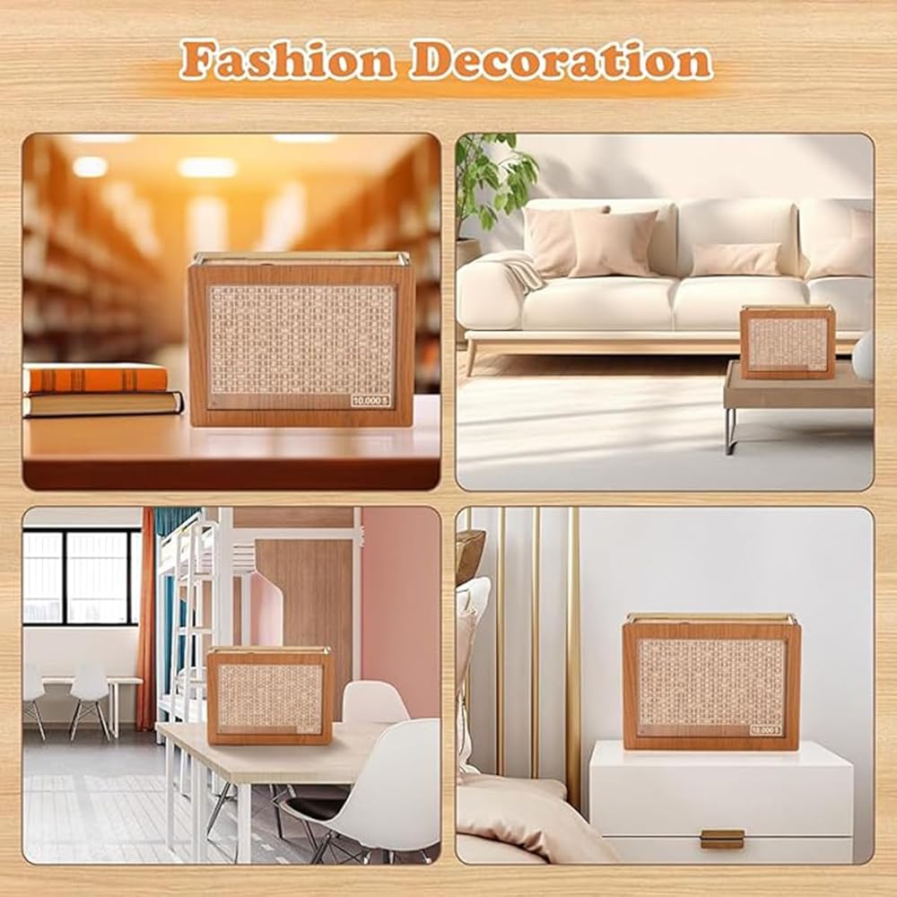 (صندوق التوفير الخشبي) هو وسيلة عصرية وعملية للادخار! تتميز بوظائف مثل عدادات العملات المعدنية وأهداف الادخار، وتضيف لمسة من المرح إلى الحصالات التقليدية. علاوة على ذلك، يضيف التصميم الخشبي لمسة من الأناقة. سواء كنت تقوم بتوفير المال لهدف محدد أو ترغب فقط في إنفاق الأموال بحذر أكبر، فإن صندوق تخزين الأموال مثل هذا يمكن أن يصبح أداة مفيدة