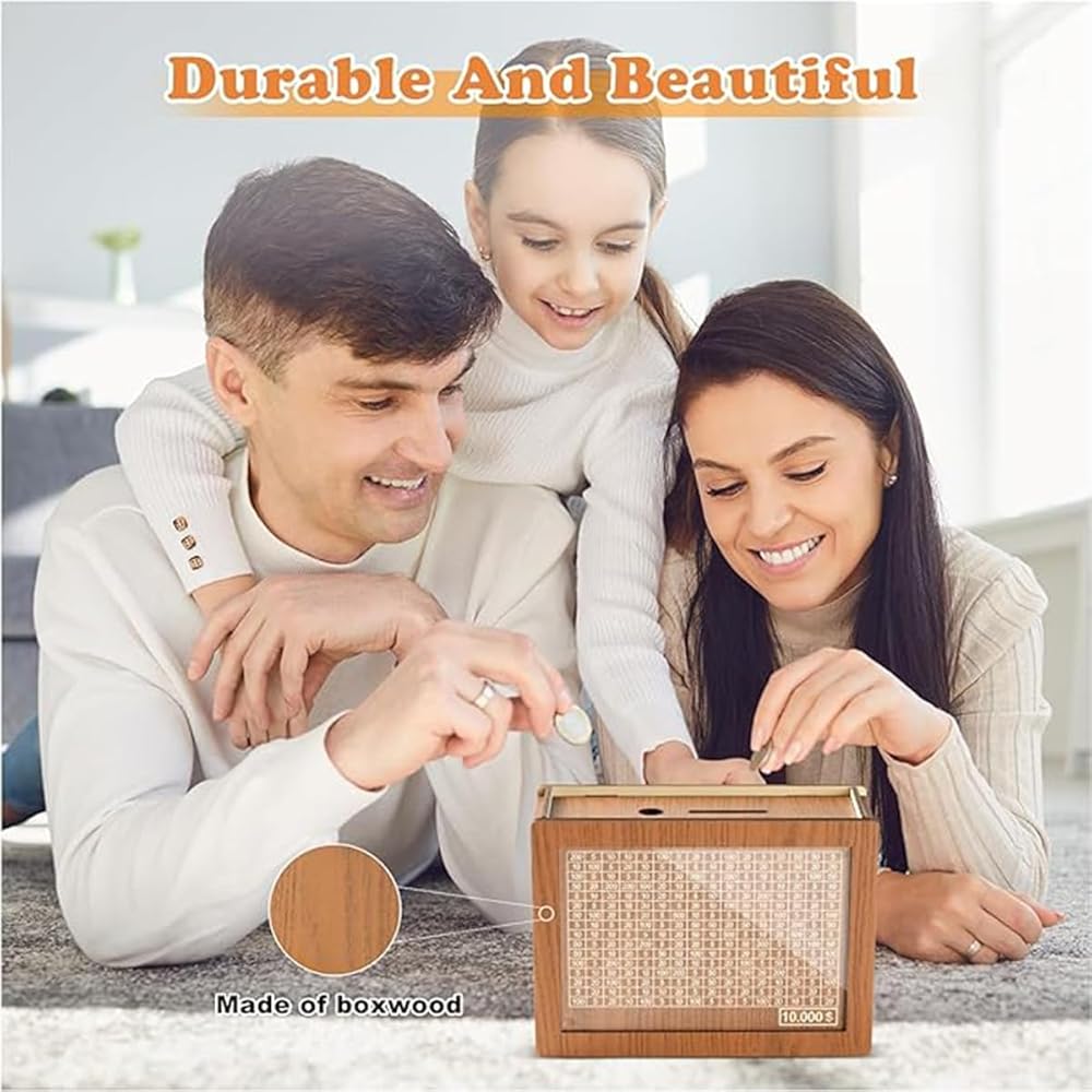 صندوق توفير خشبي بقيمة 10000 دولار أمريكي، صندوق نقود خشبي جديد لتوفير النقود لعام 2024، صندوق توفير نقدي، بنك أصبع لعداد العملات المعدنية، صندوق نقود مع عداد، صندوق نقود خشبي مع هدف نقود وأرقام (بني)