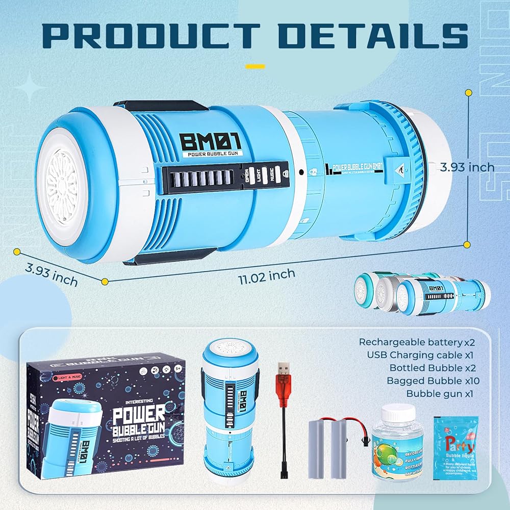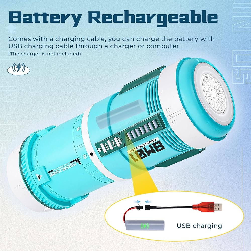 【منفاخ فقاعات قابل لإعادة الشحن】🏝️ تأتي آلة مسدس الفقاعات هذه مزودة ببطارية قابلة لإعادة الشحن بحيث لا تحتاج إلى شراء بطارية إضافية. وتسمح البطارية بقوة 1200 ساعة بالحفاظ على ظهور الفقاعات لفترة طويلة من المرح، مما يجعلها مثالية للأطفال من سن 3 سنوات فما فوق.