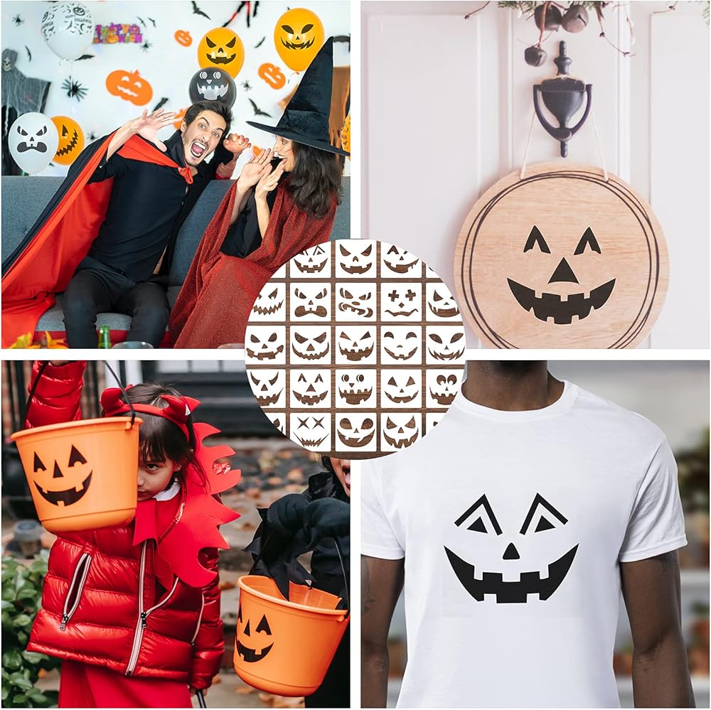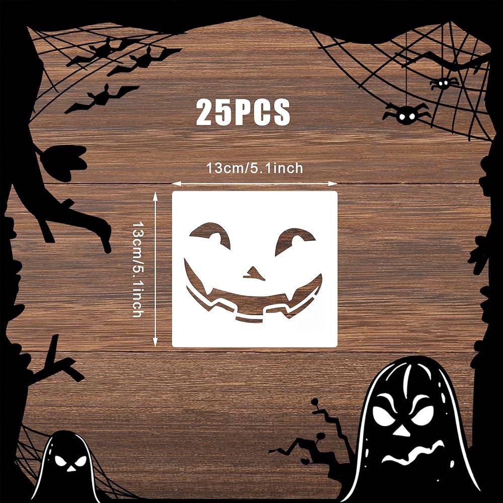 • PACKAGE CONTENTS: You will receive 25 pieces of Halloween pumpkin face stencils, each measuring 13x13cm / 5.1x5.1 inches. Enough for your painting or DIY needs.