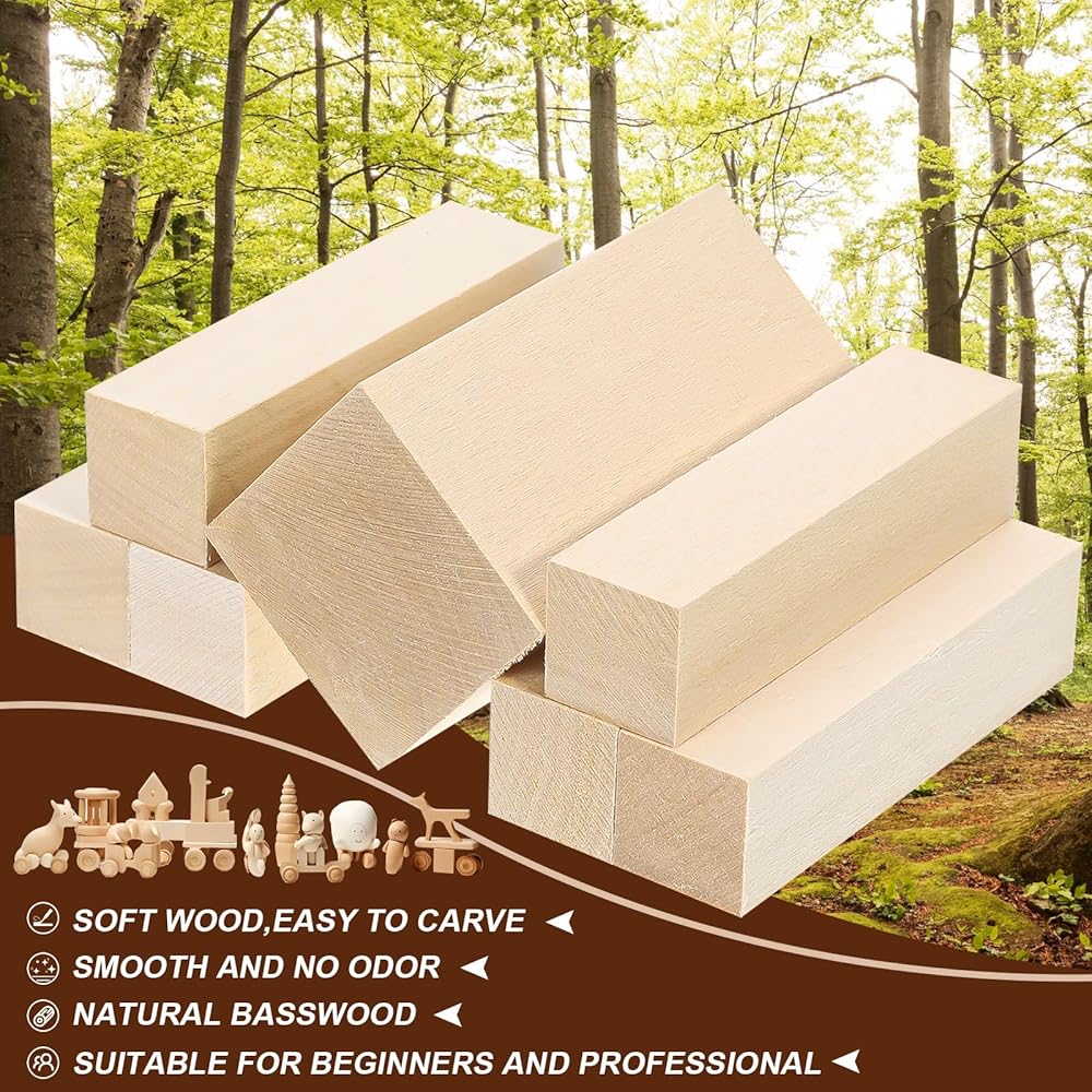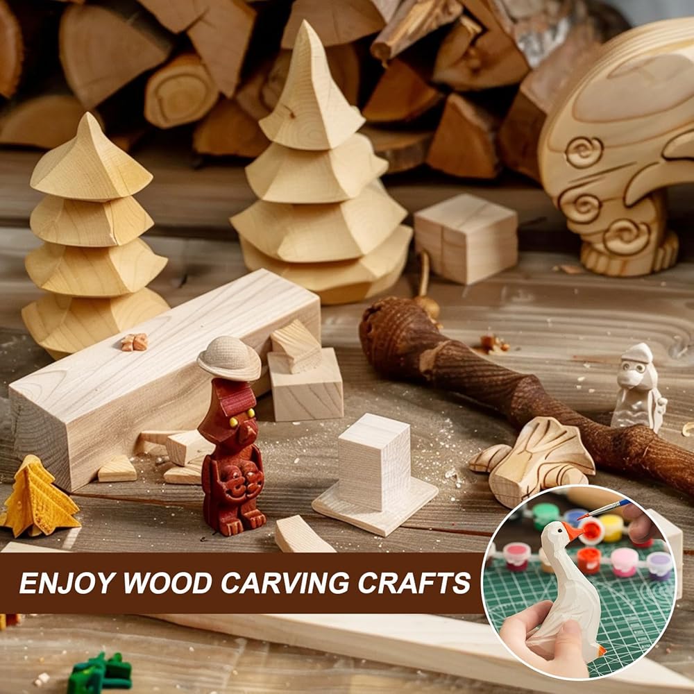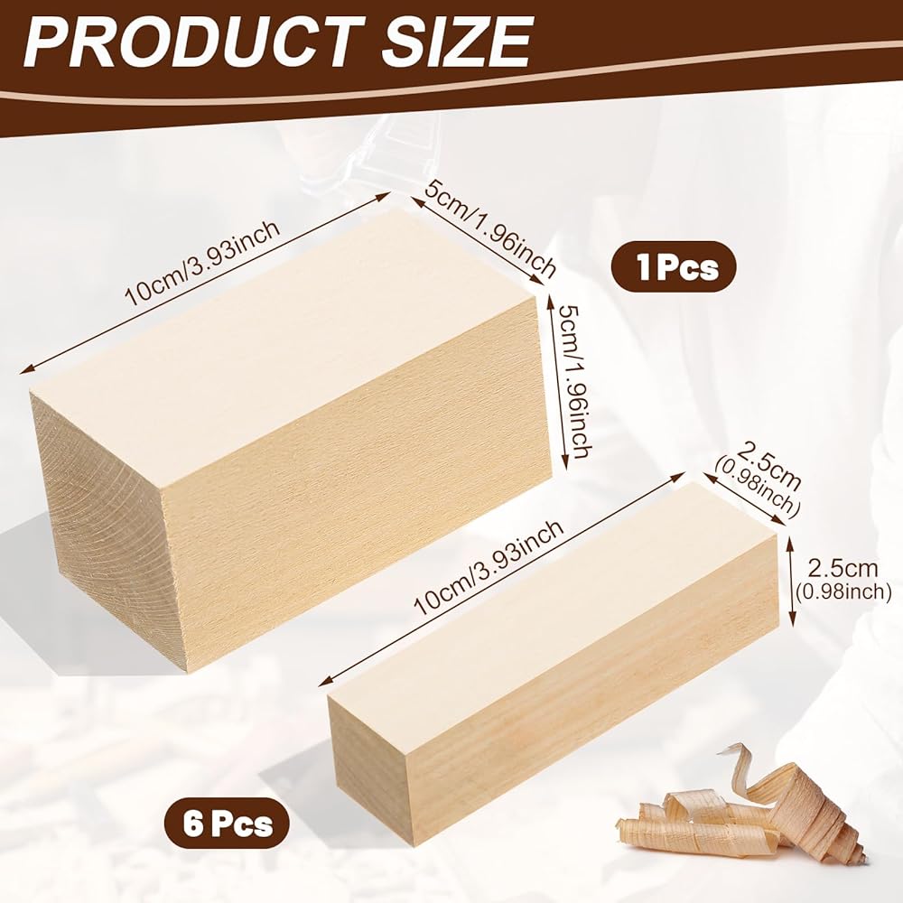 【مكعبات نحت خشب الزيزفون】مكعبات نحت الخشب الخاصة بنا مصنوعة من خشب الزيزفون الناعم، ناعم وليس من السهل أن يتشقق، بدون نتوءات، مما يسمح لك بممارسة خيالك للنحت.
