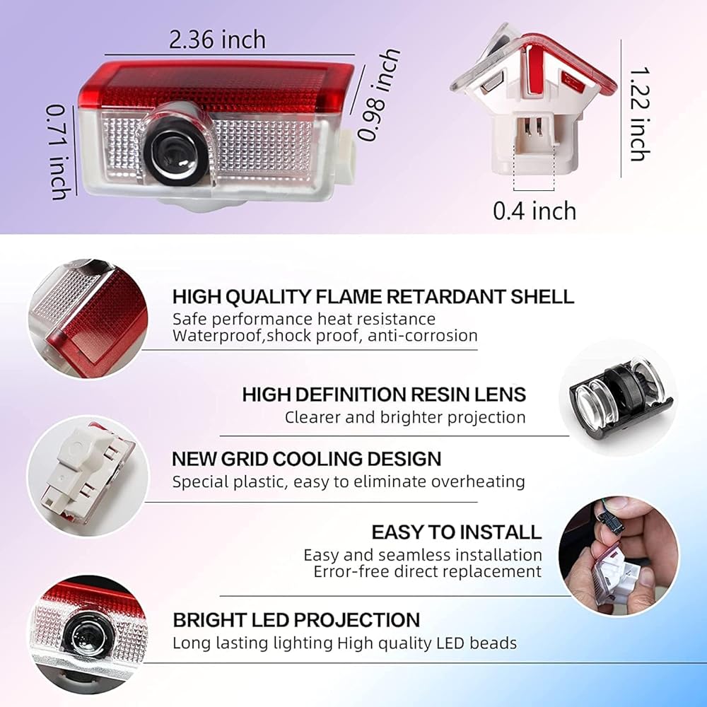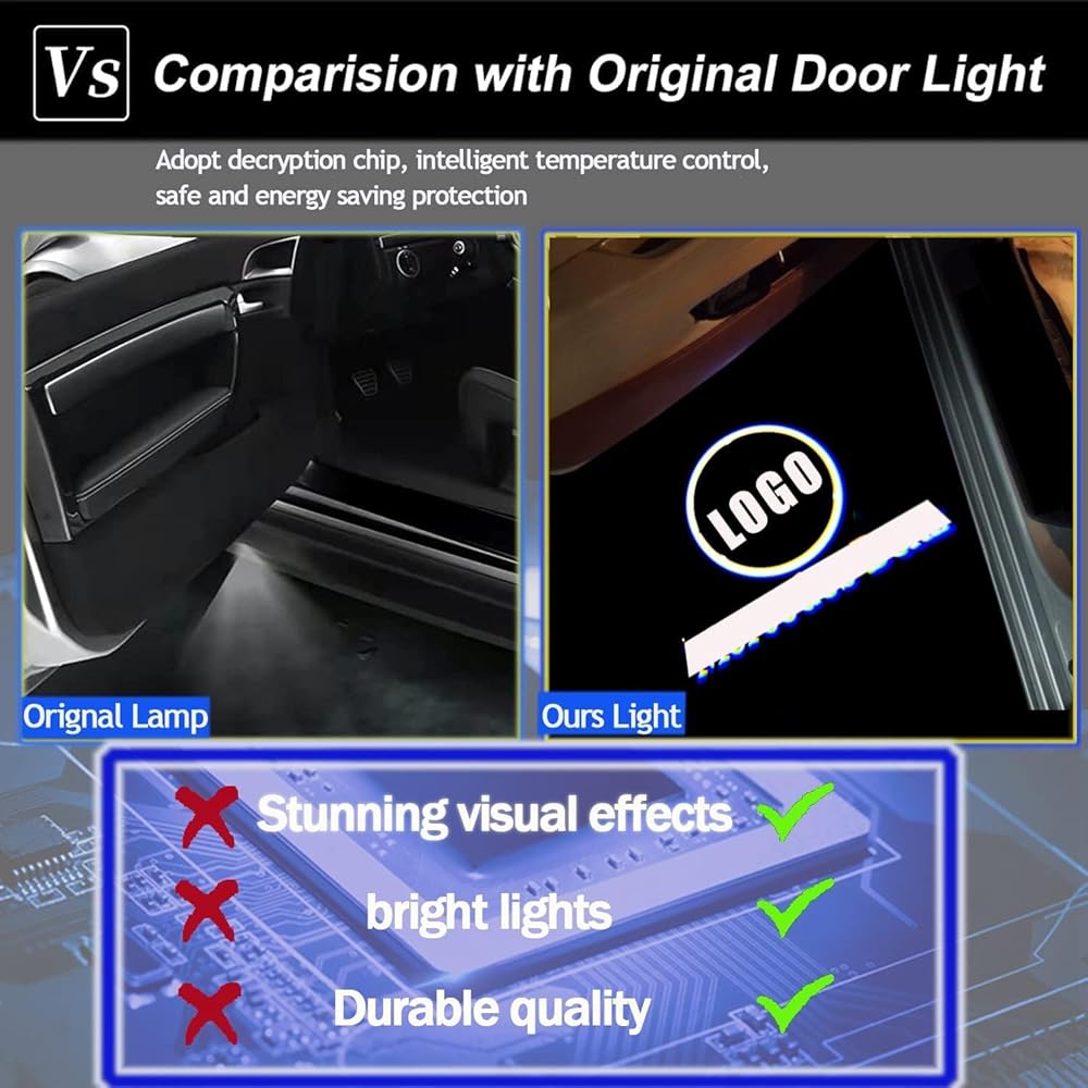 Cool Effect & Enhanced Safety: Not only does the logo projection enhance your car's aesthetic appeal, but it also serves a practical purpose. The illuminated logo pattern on the ground can alert others and help you avoid puddles or obstacles when exiting the vehicle, providing both style and safety.