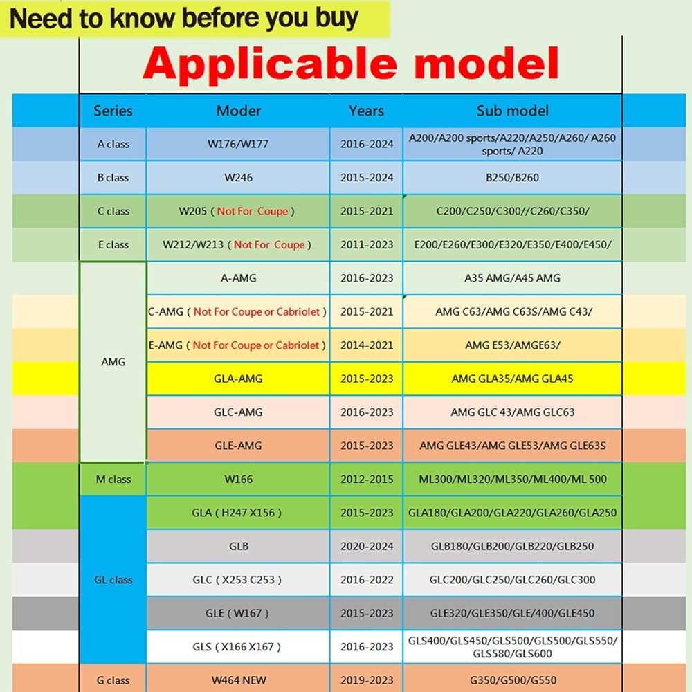 Wide Range of Compatibility: These car door logo lights are designed to fit a variety of Mercedes-Benz models from 2012 to 2024, including A-Class, B-Class, C-Class, E-Class, G-Class, ML-Class, GL-Class, GLA-Class, GLC-Class, and GLE-Class. Ensure your specific model compatibility for a perfect fit.