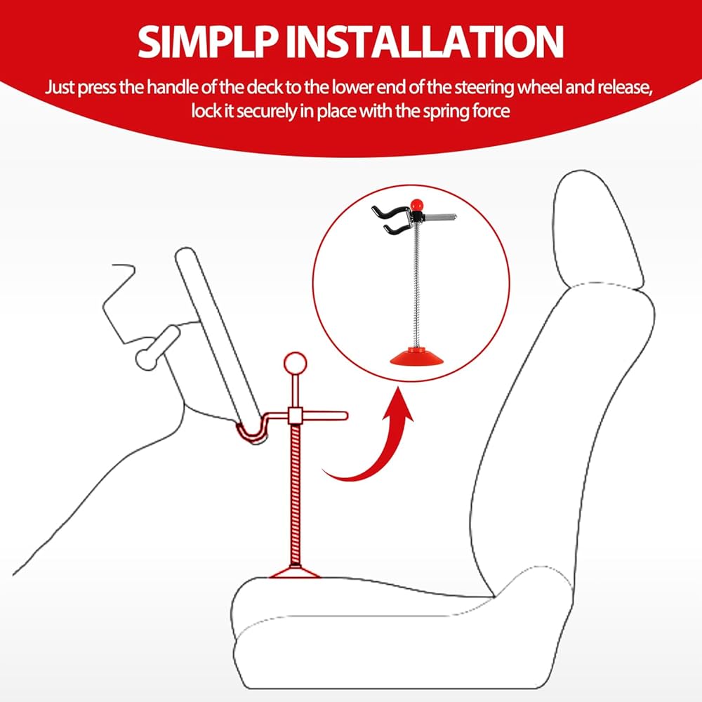 • QUICK HEIGHT ADJUSTMENT - this adjustable steering wheel holder is 14 inch tall, featured with a loaded spring, by pressing the locking switch, you could quickly adjust the ideal size for holding the steering wheel center. Work with vehicle detection technology for more accurate measurements