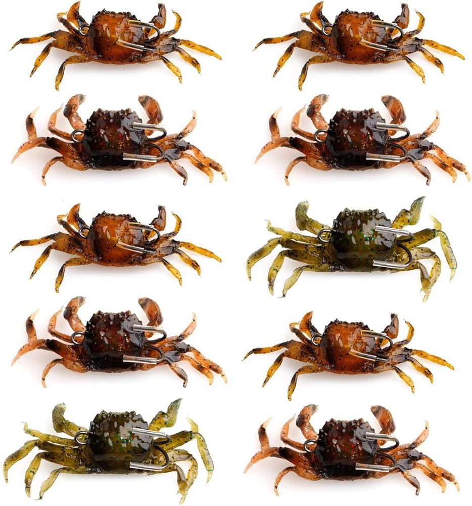 موتزو مجموعة من 10 طعوم سلطعون اصطناعية، طُعوم سرطان البحر ثلاثية الابعاد مع خطافات حادة، مصائد طُعم صيد البحر، اداة ملحقات صيد السمك في المياه المالحة، لون عشوائي