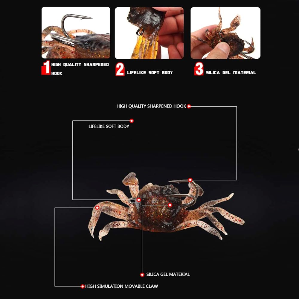 جودة جيدة -- مصنوعة من السيليكون عالي الجودة مع صناعة دقيقة، هذه الطعوم المحاكاة لسرطان البحر متينة للاستخدام لفترة طويلة وتجذب الأسماك في الماء بفعالية.