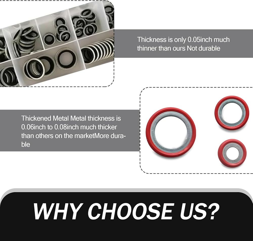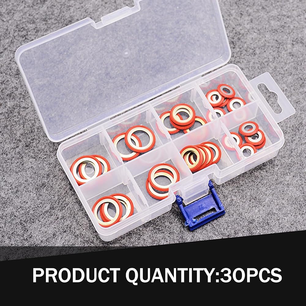 Packing Details: You will receive a car air conditioning compressor gasket assortment kit, the kit contains six different sizes of gaskets, a total of thirty pieces. If you have any product issues, please leave us a message and we will help you.