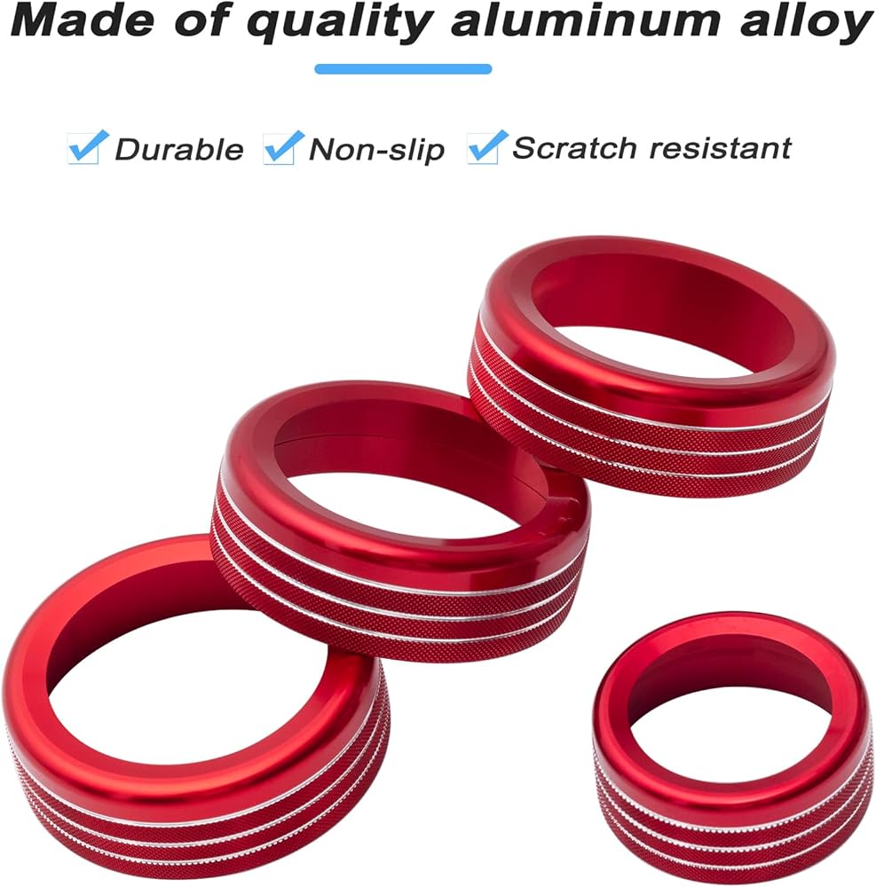 JKCOVER متوافق مع 2024 2025 Toyota Tacoma و2025 Toyota 4Runner مع 14 بوصة شاشة وحدة تحكم مركزية زر مقبض غطاء حلقات مكيف الهواء مفتاح تيار متردد أغطية صوت ملحقات سبائك الألومنيوم (أحمر، 4 قطع)