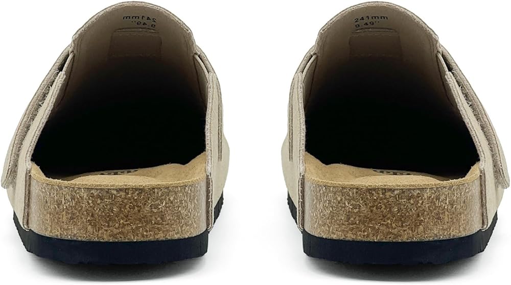 Ultimate Comfort: The 100% genuine leather upper and insole are skin-friendly and breathable. The cork midsole provides good elasticity and support. The carefully designed arch support effectively reduces fatigue. Whether relaxing at home or going out briefly, it can make you enjoy comfort and is your ideal choice.