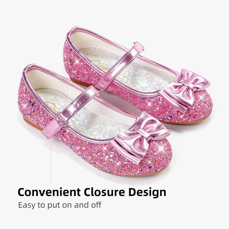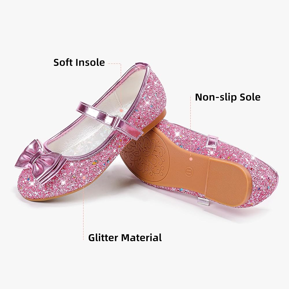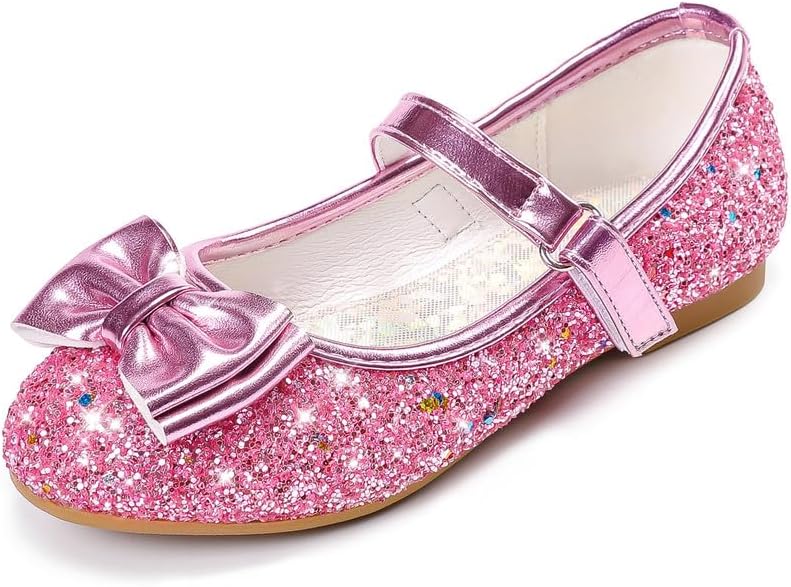 تصميم أنيق: يتميز الجزء العلوي بتصميم على شكل فيونكة، يجمع بين الموضة والجاذبية، سواء في المدرسة أو في العطلة، فإن أحذية الأميرة هذه للفتيات هي بلا شك منتج يجب اقتناؤه.