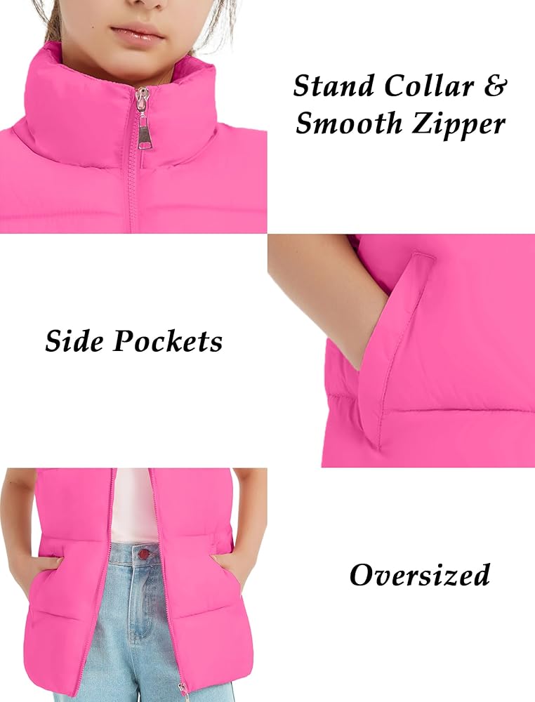 قصيرة وطويلة: اختر من بين الأطوال القصيرة أو الطويلة للسترات المنتفخة للفتيات، والتي تلبي الموضة والدفء. يسمح التصميم بدون أكمام بحركة فائقة ويمكن ارتداؤه بسهولة مع مختلف القمصان والقيعان