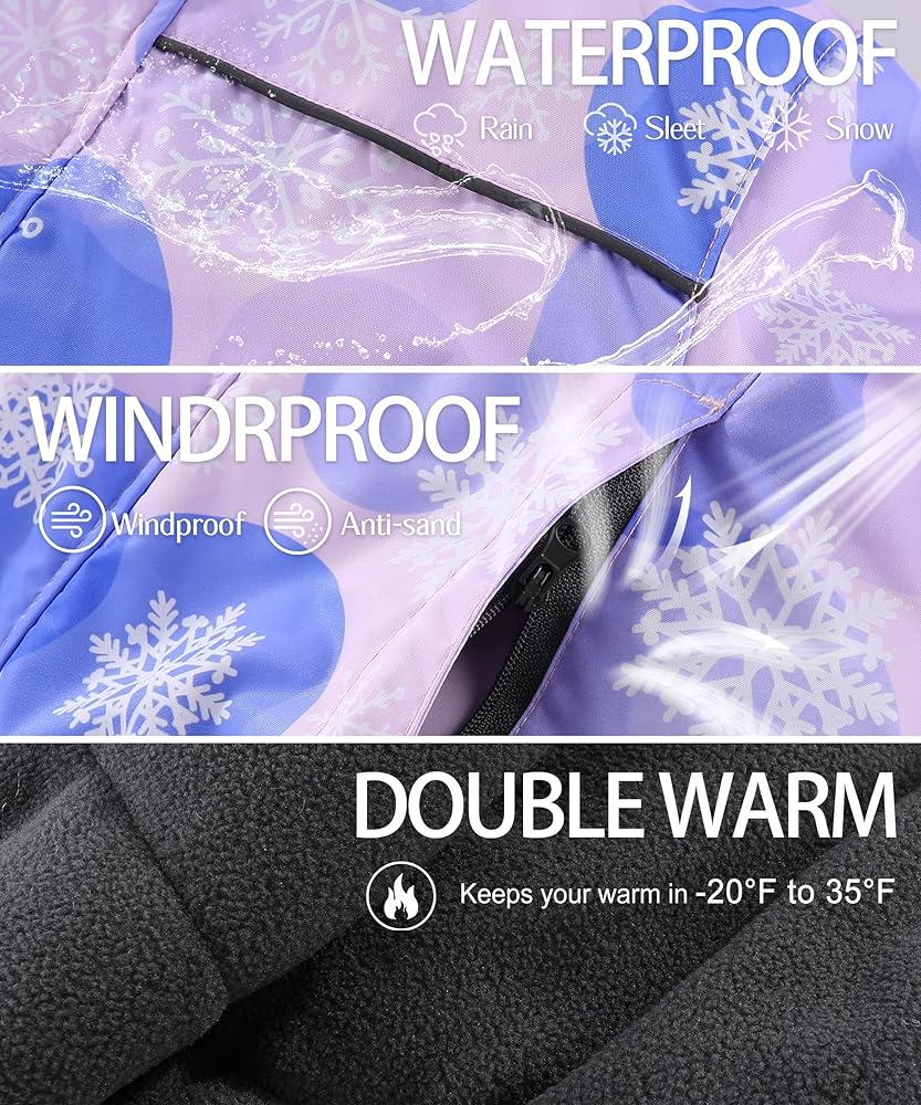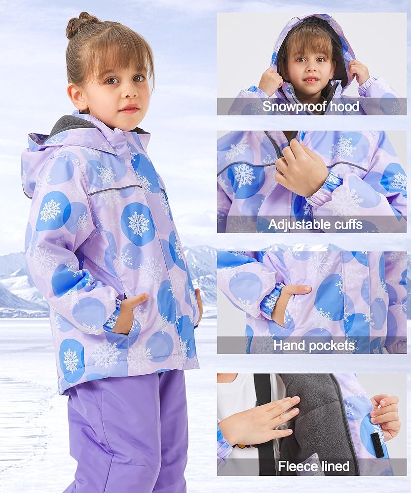 ملابس ثلجية معزولة مع غلاف متطور مقاوم للماء للحفاظ على جفاف طفلك وراحته أثناء الإقامة الطويلة واللعب. الخطوط العاكسة على الصدر وغطاء الرأس يمكن أن تجعل أطفالك آمنين.