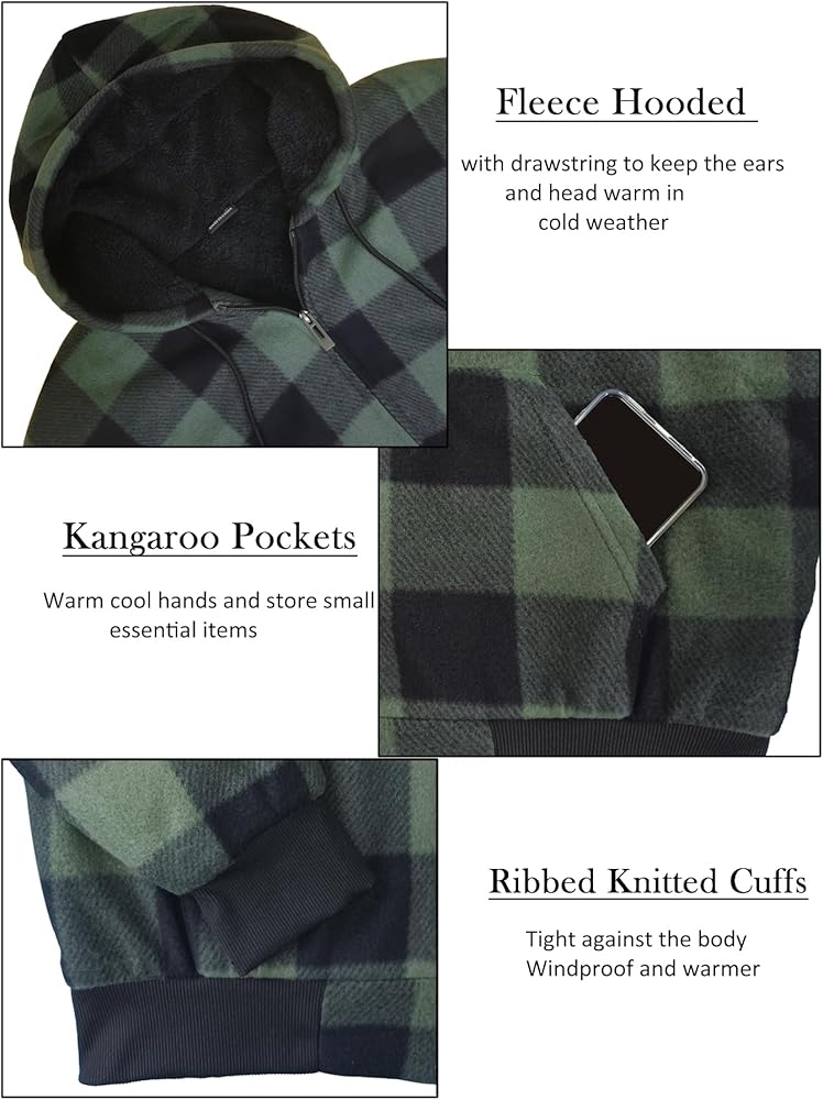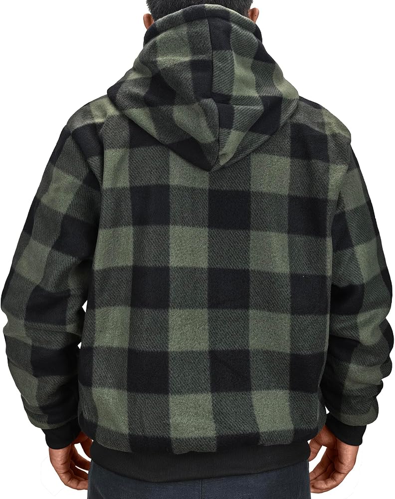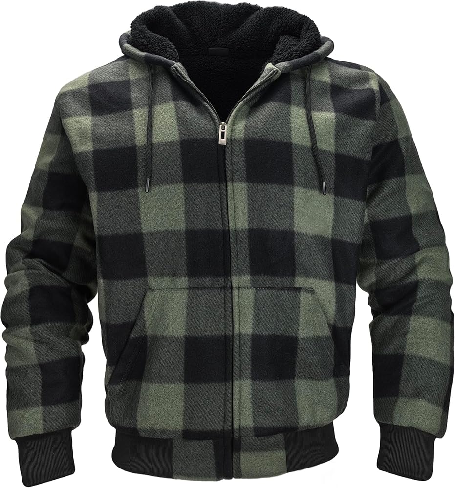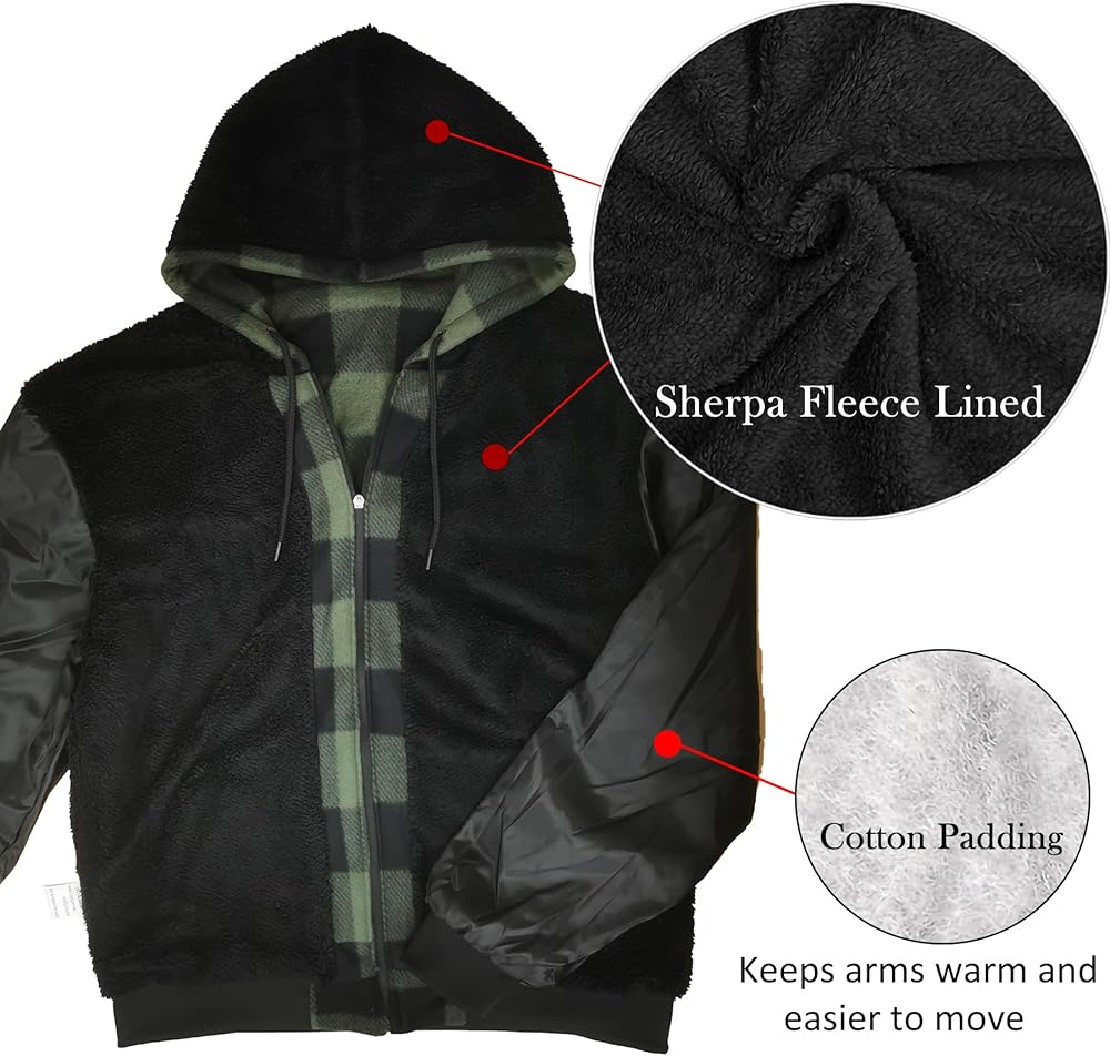 【خامة عالية الجودة】سترة بغطاء للرأس للرجال بسحاب مبطنة بصوف الشيربا لمزيد من الدفء والراحة