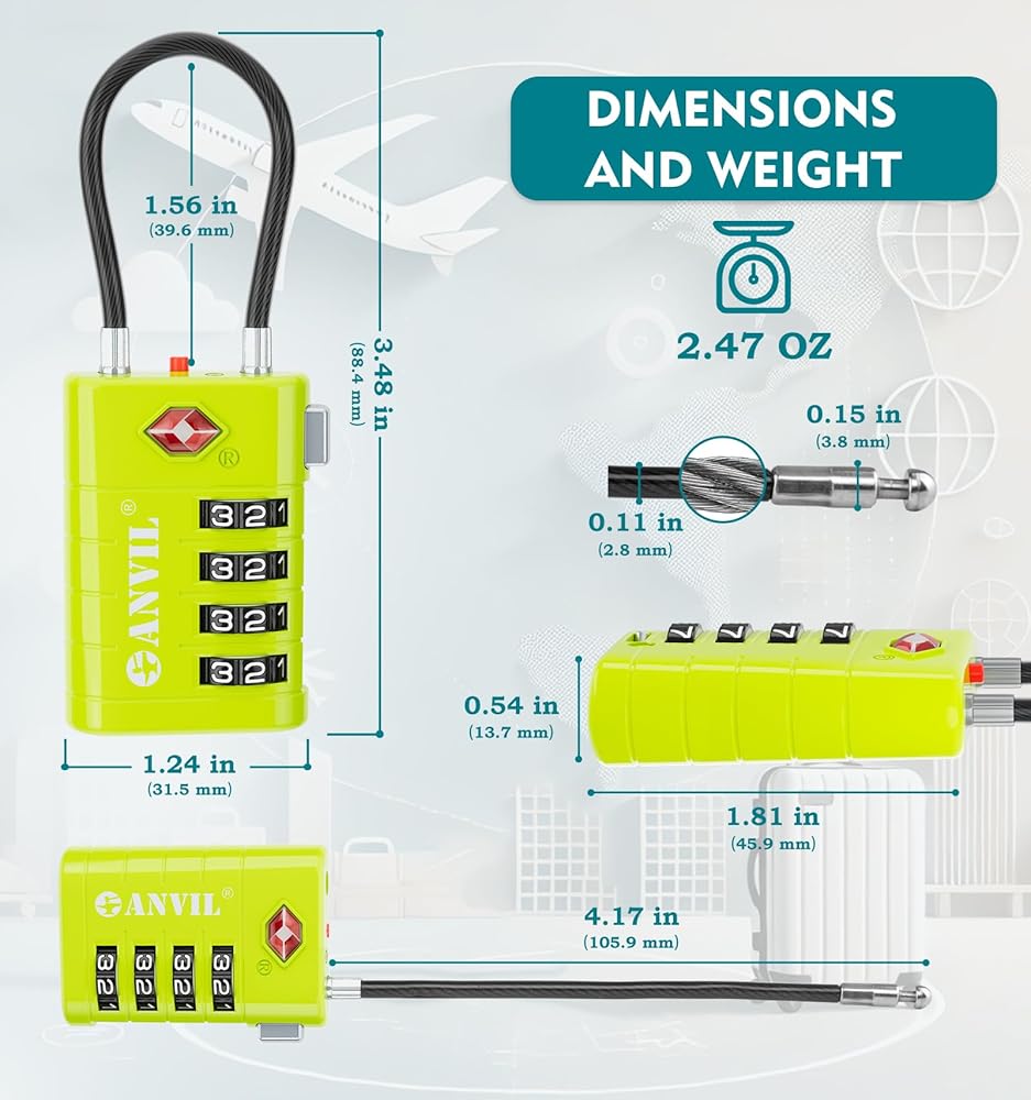 ★ أمان محسّن مع TSA008 Core ومجموعة مكونة من أربعة أرقام: يتميز قفل الأمتعة ANVIL، وهو أحد أفضل أقفال الأمتعة المعتمدة من TSA، بقلب TSA008 الرائد في الصناعة. تمنع هذه الآلية الداخلية المتقدمة بشكل كبير الوصول غير المصرح به، مما يجعلها خيارًا موثوقًا بين أقفال الأمتعة.
