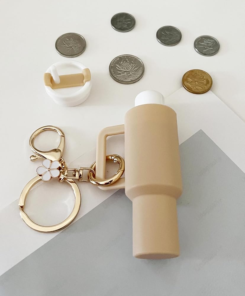 Durable and Reliable: Our Mini Tumbler cup is crafted from high-quality PLA material,ensuring it is built to last. The Mini Tumbler Keychain Accessories for Stanley Cup are made of high-quality gold alloy electroplating, ensuring durability and a long-lasting shine, it came with a mini flower charm, You can trust that this keychain will not deform or fracture easily, providing you with a reliable accessory for years to come.
