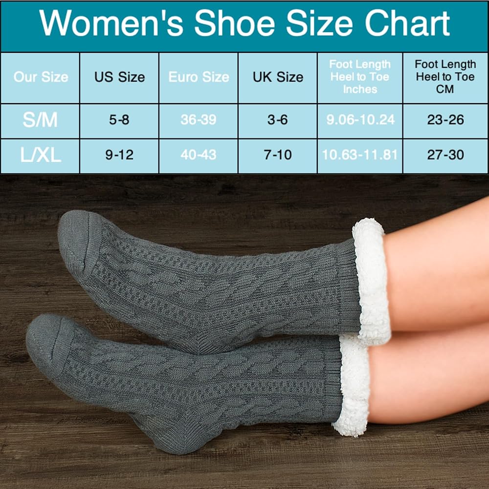 راحة ودفء فاخر: تتميز جوارب Metluks النعال للسيدات بغطاء متماسك يشبه الصوف الذكي وبطانة سميكة من الشيربا الحراري تضمن بقاء القدمين دافئة ودافئة أثناء الطقس البارد، مثالية للاسترخاء في المنزل خلال مواسم الربيع والخريف والشتاء.