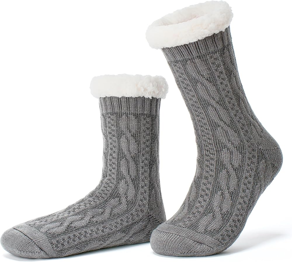 هدية أنيقة لأي مناسبة: بفضل تصميمها المخملي سهل الارتداء والانتفاخ واختيار الألوان المتنوعة، بما في ذلك الرمادي والأسود والكحلي، فإن هذه الجوارب المحبوكة هي الهدية المثالية لأعياد الميلاد أو عيد الحب أو عيد الأم أو كهدية مدروسة لجوارب عيد الميلاد