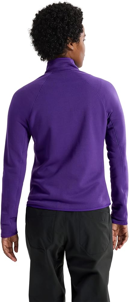 53% recycled content Polartec® Power Stretch® Pro fleece combines a highly durable nylon face with a soft, comfortable, brushed polyester interior |Raglan sleeve for improved arm mobility and comfort under a pack |Merrow seam construction minimizes bulk and enhances comfort |Cuff and hem are bound with durable Tanica™ stretch fabric |Zippered laminated hand pockets secure small essentials |High hip-length design provides comfort on the move and layers easily under a shell |Fitted, with articulated patterning for mobility, comfort, and easy layering